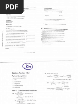 10 3 Percent Composition Chemical Formulas Answer Key Answers Pdf Document